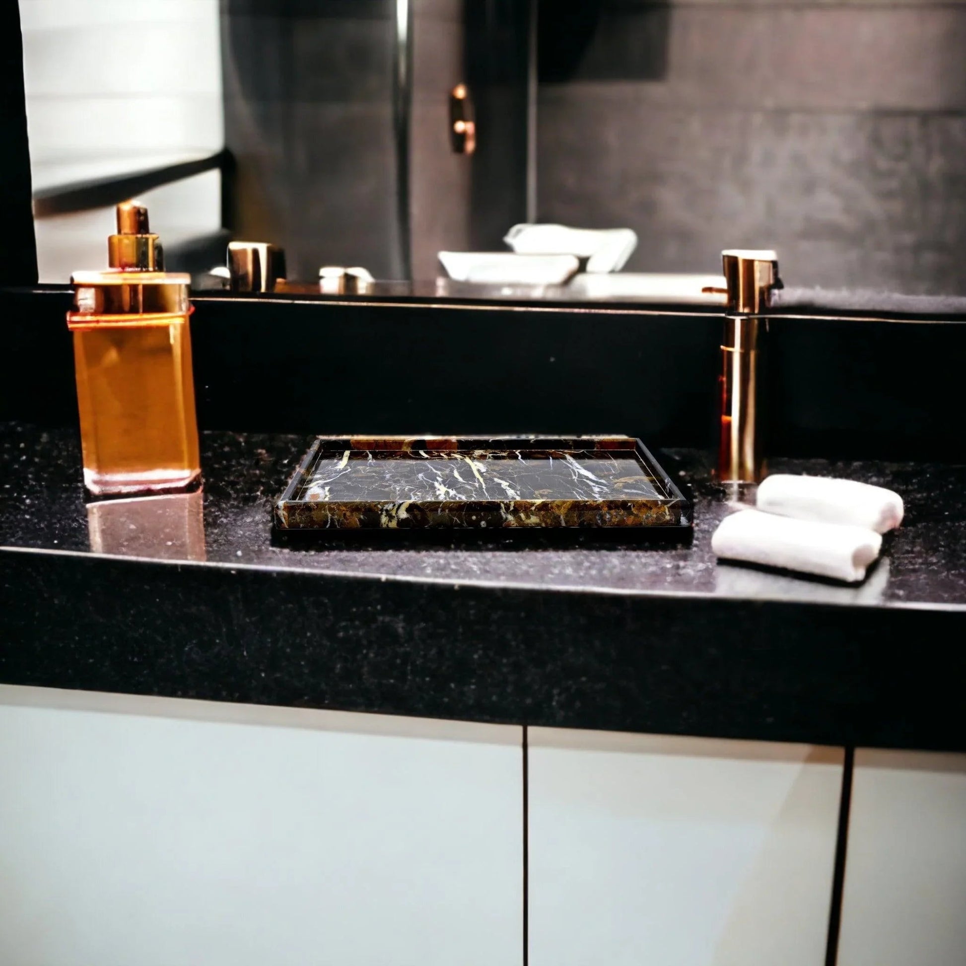 Experience the elegance of a Michelangelo Marble bathroom vanity tray. Ideal for adding a touch of luxury to your bathroom, this bathroom tray will provide a sophisticated accent to any setting. Perfect for storing toiletries or relaxing bath items, this exclusively crafted tray is the perfect finishing touch for your bathroom.