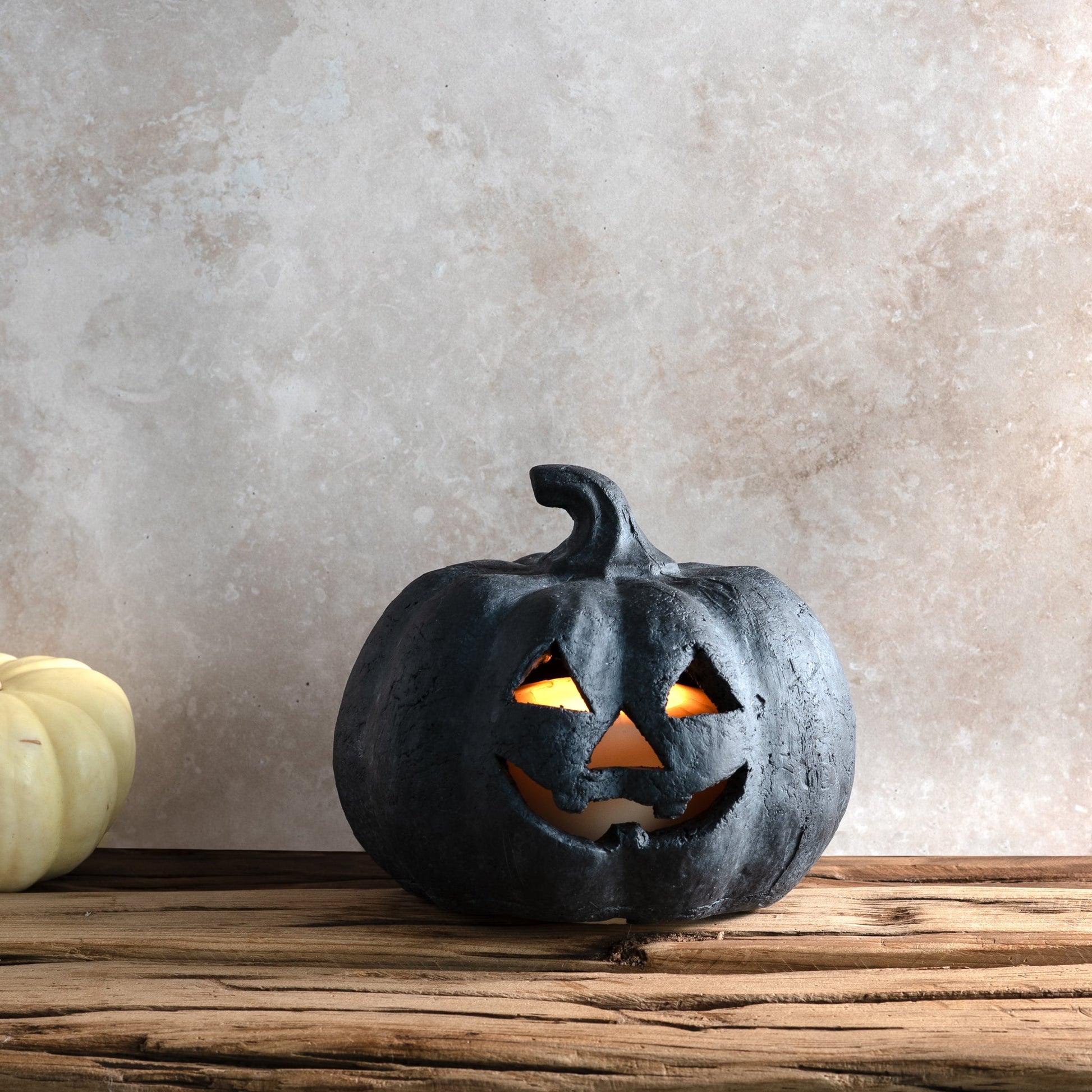 Black Terracotta Jack-O-Lantern Pumpkins | 2 Sizes
