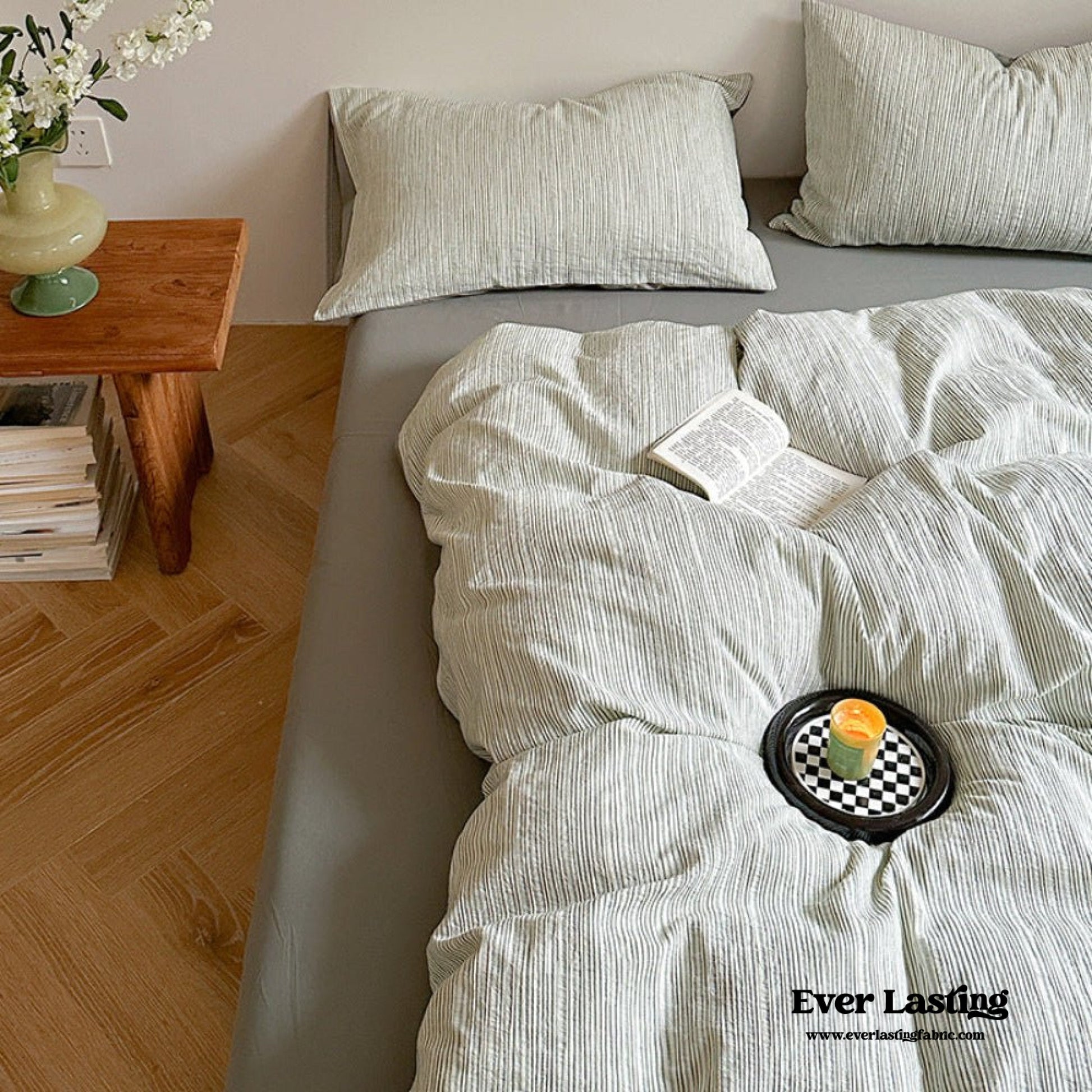 Transform your bedroom into a serene escape with the Emma Duo Striped Jacquard Bedding Set by Ever Lasting. Crafted from breathable, soft-touch fabric, this set features delicate pastel stripes and subtle jacquard texture for a refined, airy look. Designed for both comfort and convenience, the duvet cover includes corner ties and a hidden zipper to keep your insert perfectly in place. Soft, stylish, and effortlessly calming—this set is perfect for those who appreciate minimalist elegance with a cozy touch.