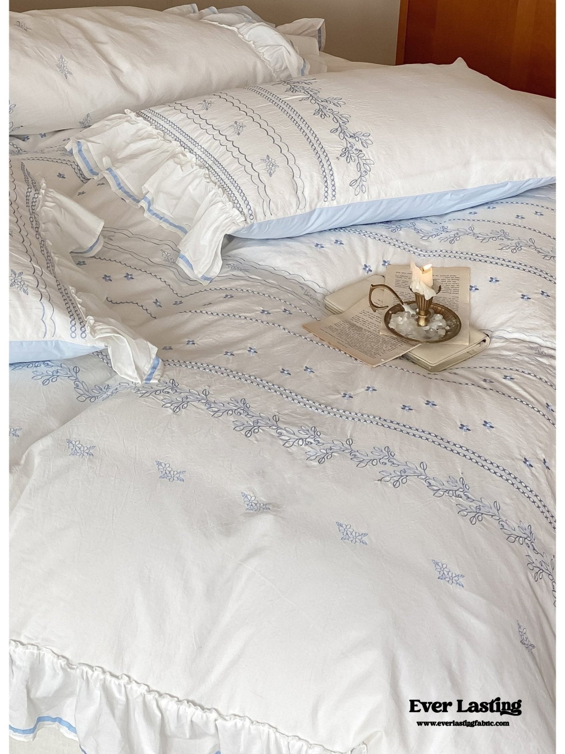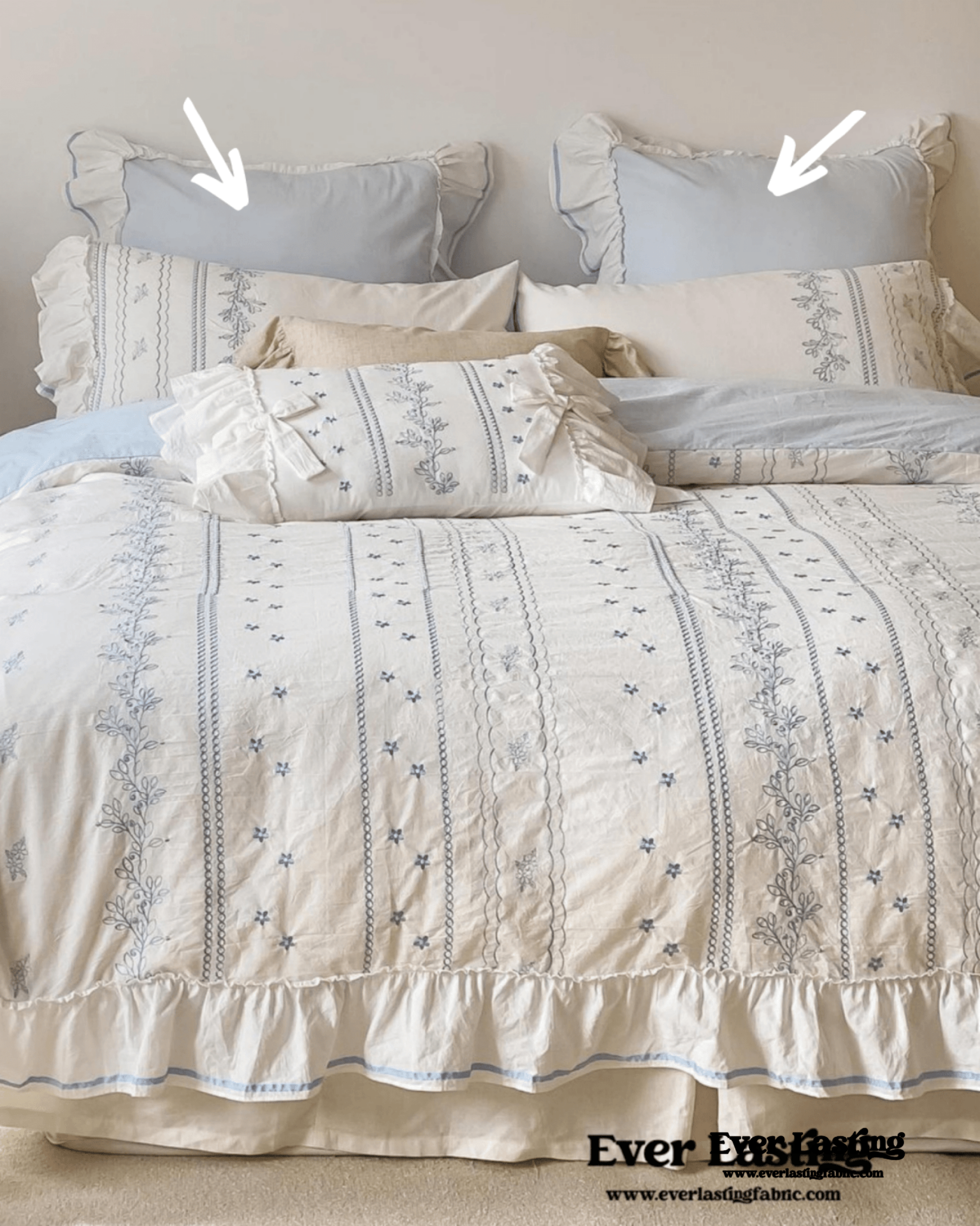 Elevate your bedroom into a cozy and sweet oasis with Ever Lasting's Blue Ruffle Square Pillowcase. These pillow covers features delicate details and a captivating ruffled design, adding a touch of elegance, romance, and coquette charm to your bedroom. Crafted from breathable 100% washed cotton, it ensures a comfortable and relaxing night's sleep, keeping you cool and refreshed. Elevate your bedroom decor with our handmade luxurious pillowcase that combines coziness, softness for your dream coquette aesthetic bedroom.