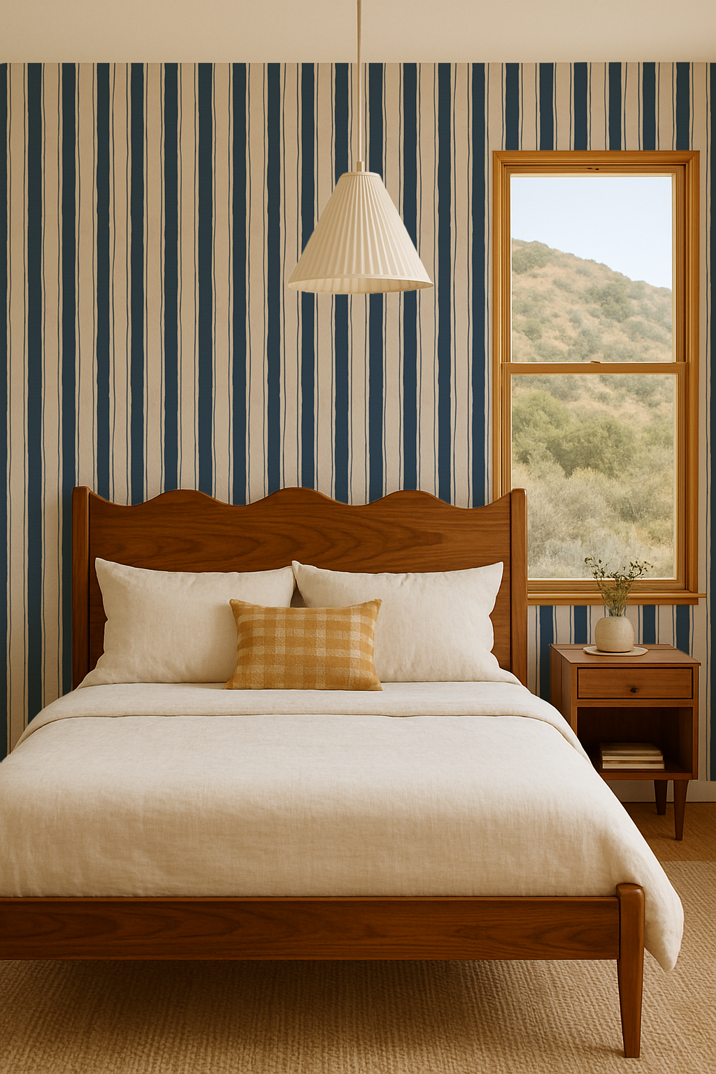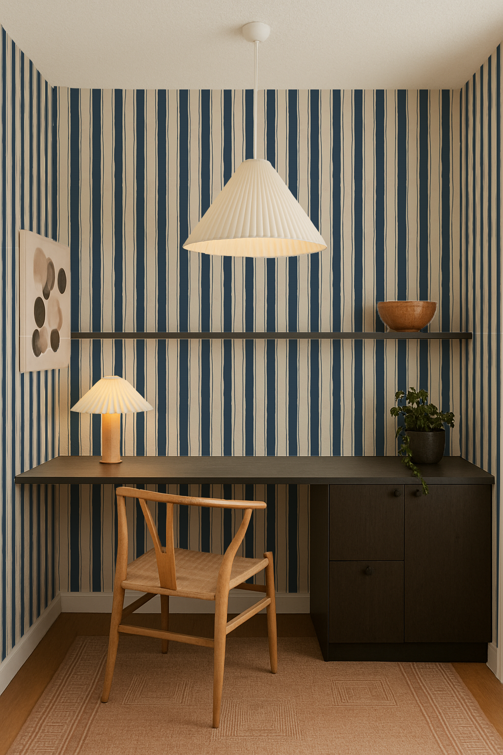 Add a touch of timeless poolside charm with the Riviera Stripe Wallpaper, illustrated by Samantha Santana. Featuring a sleek off-white and navy blue stripe design, this wallpaper is both stylish and versatile. Installation is simple with your choice of peel-and-stick vinyl or traditional pasted options, making it perfect for any skill level. Plus, it’s fully removable, so you can easily update your space whenever inspiration strikes. Perfect for bringing expert style and effortless fun to your walls!