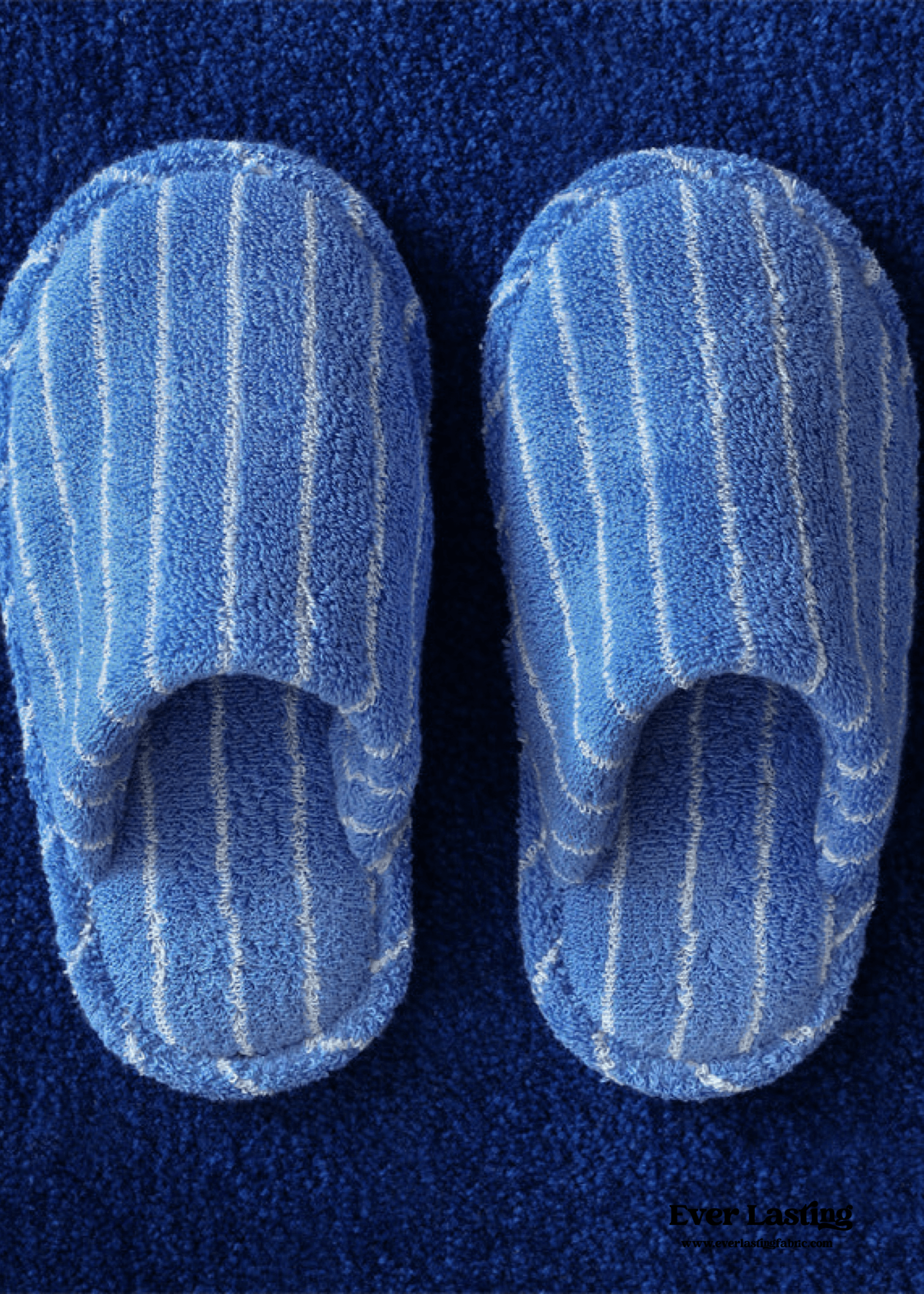 Indulge in modern elegance and comfort with Ever Lasting's Thin Striped House Slippers. Add a touch of contemporary simplicity to your relaxation routine with thin stripes that elevate your lounging experience. Embrace the fusion of modern and minimal aesthetics and cozy indulgence for a stylish and soothing journey with every step. Pamper your feet with fashion and embrace the art of relaxation in style with our Thin Stripe House Slippers, perfect for enhancing your downtime with comfort and sophistication.
